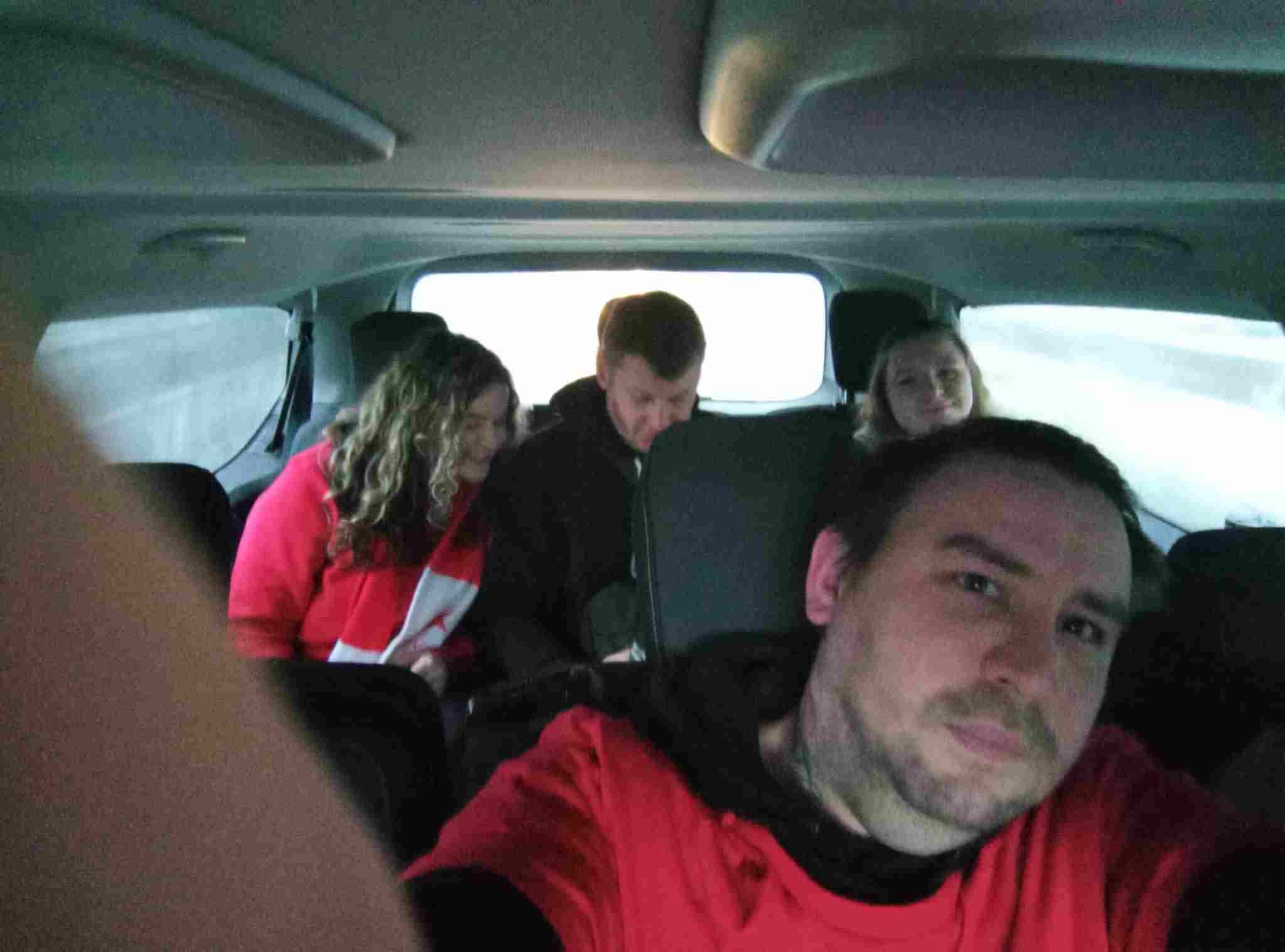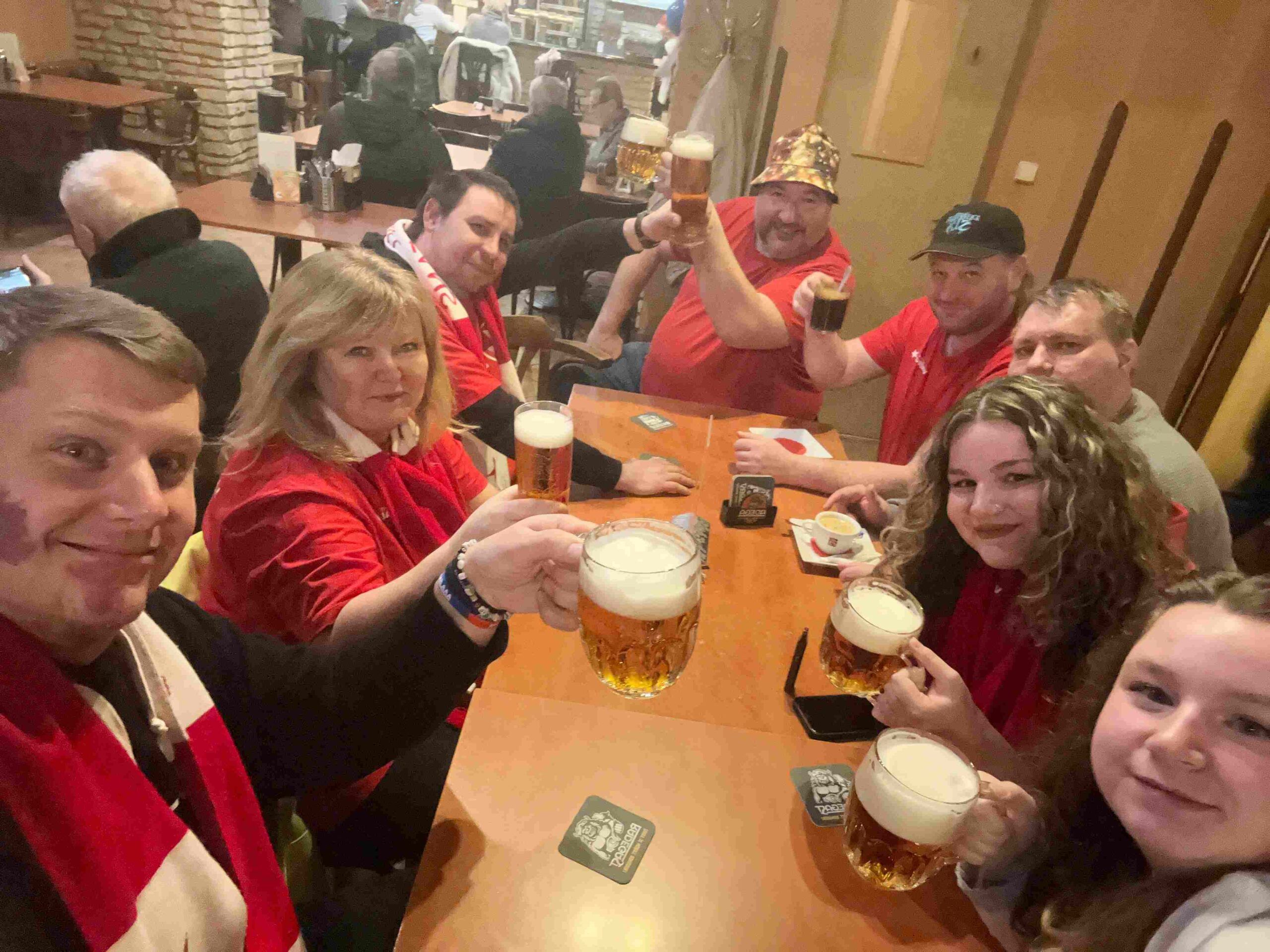 Zatímco druhé auto ještě hledalo cestu skrz pražské uličky, první skupina fanoušků už poctivě pracovala na předzápasové přípravě v nedaleké hospůdce. Nakonec se všichni šťastně shledali – a protože jsme tým, šlo se společně do haly.