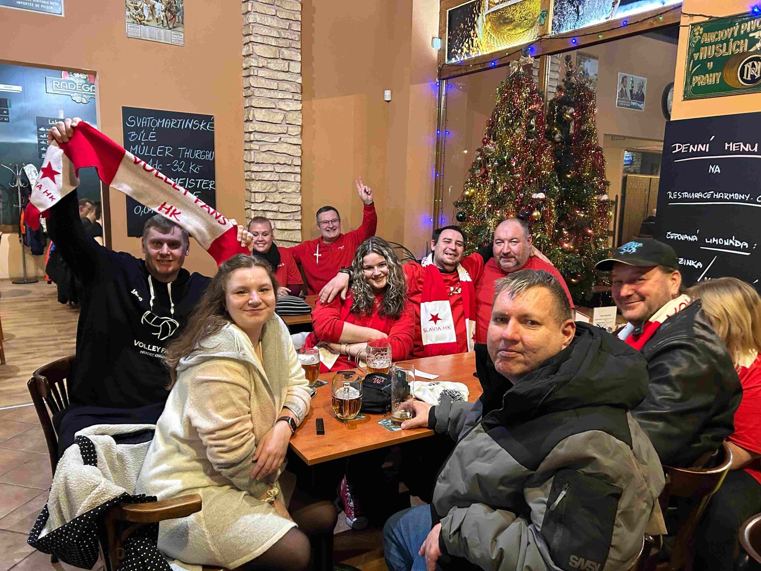 Ať už v univerzitní hale, nebo v přilehlé hospůdce, Volley Fans HK opět dokázali, že my jsme zkrátka všude doma. Po zápase proběhla malá oslava vítězství, protože radost se má sdílet – a my sdílíme rádi a nahlas.